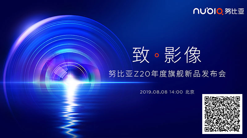 点击或扫描二维码进入视频直播 努比亚定于8月8日在京召开新品发布会,推出全新旗舰努比亚Z20手机,依旧以极致拍照体验和具有努比亚特色的相机玩法为主打,令人倍感期待。 据悉,努比亚Z20将采用双屏方案; 后置三摄像头,支持侧面指纹识别; 主屏尺寸为6.42英寸,分辨率为2340×1080,副屏尺寸为5.1英寸; 搭载高通骁龙855 Plus旗舰平台,后置4800万AI三摄; 更多图文报道敬请扫描上方二维码 努比亚Z20新品发布会于8月8日14:00在京举行,非凡实验室将对这场活动进行现场直播和新闻报道,敬请大家届时关注!