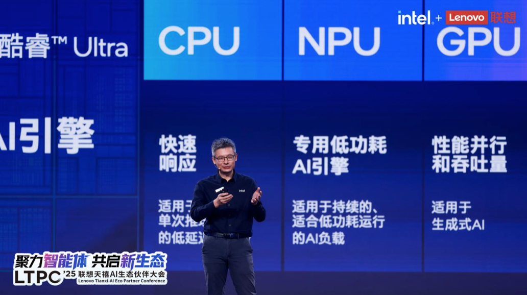 大会上,英特尔市场营销集团副总裁、中国区总经理郭威表示:“英特尔与联想携手前行已有四十年,共同推动了个人计算领域的一次次创新跨越。今天,站在‘人工智能+’时代的起点,英特尔与联想已合作推出覆盖消费与商用市场的数十款AI PC。今后,英特尔将继续依托软硬件深度协同,全面支持联想天禧个人智能体生态‘一体多端’战略的发展。我们也将共同构建更开放的生态,赋能开发者社群,激发千行百业的创新活力,也让技术进步惠及千家万户。”