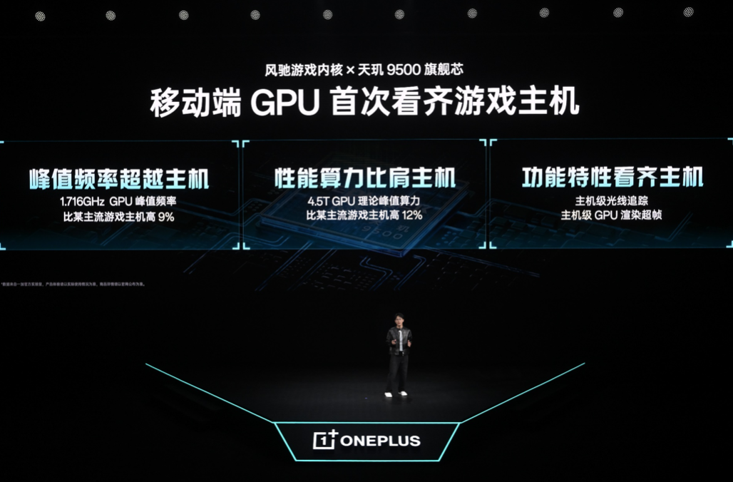 一加Ace 6至尊版出厂写入一加自主研发的行业首个芯片级游戏技术——全新一代「风驰游戏内核」,通过深入芯片底层的重构优化,天玑 9500 移动平台的潜力得以全面释放。尤其是在GPU性能释放层面,一加 Ace 6 至尊版带来了游戏主机级渲染能力,让移动端GPU首次看齐游戏主机:GPU频率高达1.716GHz,比主流游戏主机高出9%;峰值算力高达4.5T,高于主流游戏主机12%;同时支持主机级光线追踪与主机级GPU渲染超帧,功能特性看齐主机。