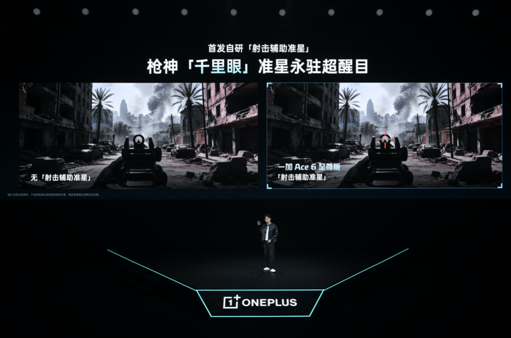 在旗舰性能与最强触控之外,一加 Ace 6 至尊版以游戏战术大师工具进一步强化视觉、听觉等全方位感官效果,带来暗处补光、听声辨位、指哪打哪的沉浸式刚枪体验:首发自研「射击显示增强」技术堪称枪神「夜视仪」,大幅提升游戏中暗部细节辨识度,让蹲人的“老六”对手无所遁形。自研「脚步声增强」技术,让游戏中脚步声更为清晰,助力玩家听声辨位。射击辅助准星,支持准星样式、大小、颜色与透明度个性化调节,强化瞄准的可控性与稳定性。此外,一加 Ace 6 至尊版带来游戏屏幕光效功能,每次击杀均能激活,营造独特氛围效果,并支持游戏内小布一句话搜攻略,助力玩家丝滑通关。
