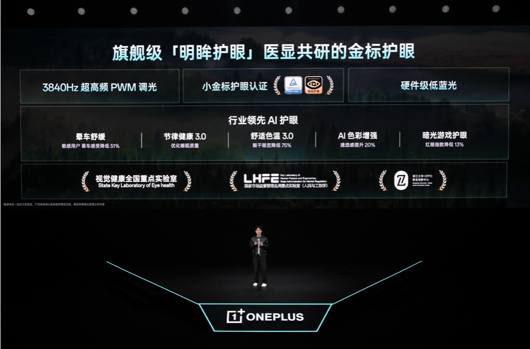 为守护长时间游戏时的视觉健康,一加 Ace 6 至尊版带来了医显共研的旗舰级「明眸护眼」技术,硬件级低蓝光、3840Hz 超高频PWM 调光及行业领先的AI护眼功能,通过行业最严苛的德国莱茵TÜV「小金标」护眼 5.0认证。此外,一加 Ace 6 至尊版还搭载了旗舰同款超声波指纹技术,解锁速度提升46%,并配有旗舰同款晶盾玻璃,耐刮耐磨性能全面提升。