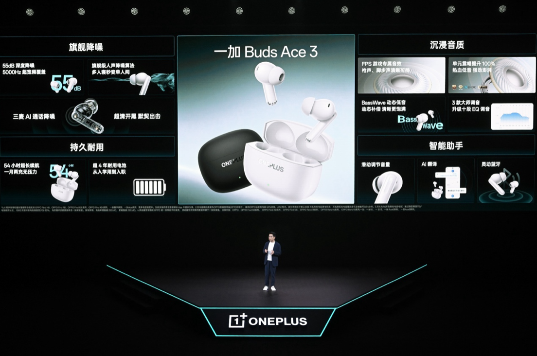 同台发布的还有耳机新品一加 Buds Ace 3,兼具强悍降噪、沉浸音质与智能体验,其采用55dB旗舰降噪,有效隔绝宿舍、办公、通勤等各类环境噪音;支持54小时超长续航,轻松覆盖长时间游戏娱乐与日常出行需求;内置FPS游戏专属音效,单元振幅提升100%,听声辨位更准,手游对战氛围感拉满;同时支持滑动调节音量、AI同声传译和面对面翻译等功能。此外还有一加40W超级冰点磁吸散热器、一加 120W 超能舱超级闪充移动电源等散热、充电配件新品,全面加持玩家极致游戏体验。