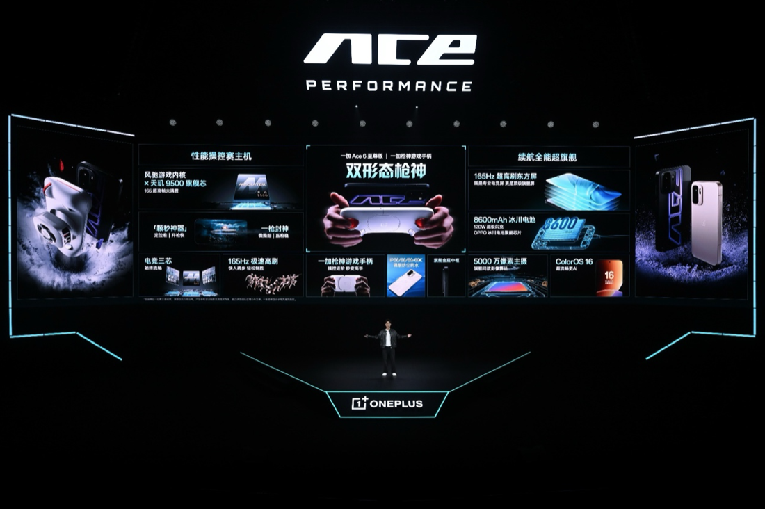 4月28日,一加正式发布「颗秒神器」一加 Ace 6 至尊版。作为游戏性能旗舰最强之选,一加 Ace 6 至尊版搭载当代旗舰芯天玑9500移动平台,并独家写入一加自研芯片级游戏技术——全新一代「风驰游戏内核」,以持续满帧的165超高帧、颗秒级精准的最强触控、感官更沉浸的满配战术工具,重新定义行业最强射击游戏体验。一加 Ace 6 至尊版配备旗舰同款「冰河散热系统」、同档领先的 8600mAh 超巨量「冰川电池」 + 120W 超级闪充组合,首发自研OPPO冰川电池聚能芯片,支持IP66/IP68/IP69/IP69K满级防尘防水,并搭载超流畅更 AI 的新一代ColorOS 16,以枪神形态全面出击。同时,一加首发行业首款「触按融合」射击游戏专属手柄——「一加枪神游戏手柄」,带来区别于外挂肩键、拉伸手柄和传统手机肩键的全新操控方案,解锁新机双形态体验,为玩家打造「枪神梦想装备」。